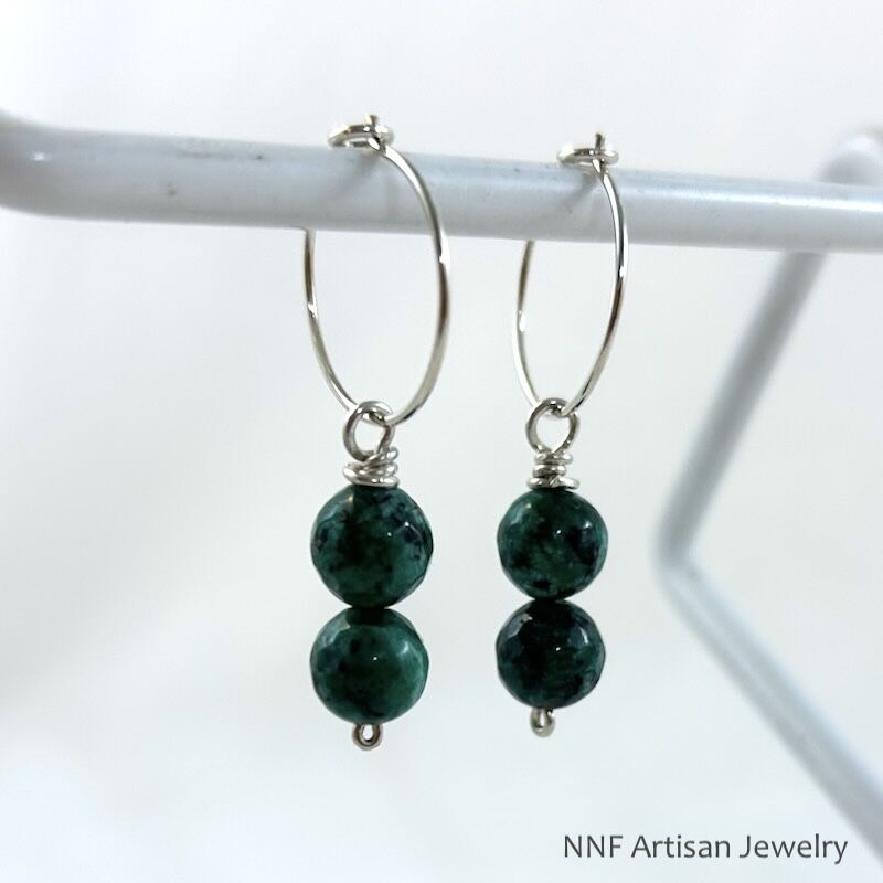 BLUE GREEN AVENTURINE ARGENTIUM HOOP DANGLE EARRINGS listed in: