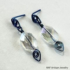 These earrings are made with sparkling clear crystal glass beads, faceted to catch the light. I have anodized these so that the niobium colors really bring out the shine. 1.5 inches long (3.8 cm). These earrings are in stock and ready to send to you today. These are currently available in three (3) colors: Spring Green, Teal (blue/green), and Light Blue. Please make your selection on the drop down menu.