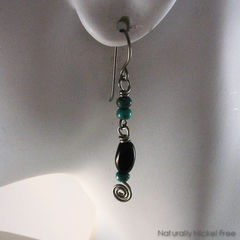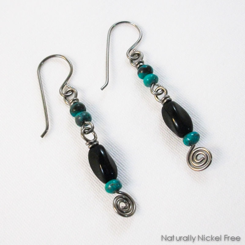 Twisted Black Glass Niobium Earrings with Turquoise Accents